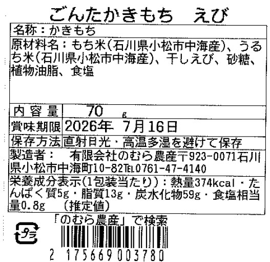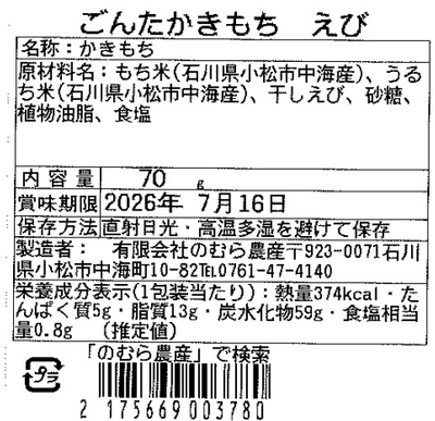 干し白えびを混ぜ込んだ旨味豊かな揚げかきもちです。