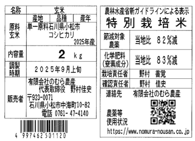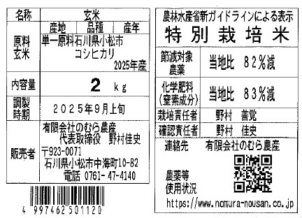 農薬・化学肥料の使用を通常の栽培方法に比べて50%以下に抑えたお米を言います。当社では農薬を50%以下のところ82%減で、さらに化学肥料も50%以下のところ83%減でお米作りをしております。できる限りの安心と安全をお届けいたします。特別栽培米は各都道府県からの認証をいただくことで表示できるものです。